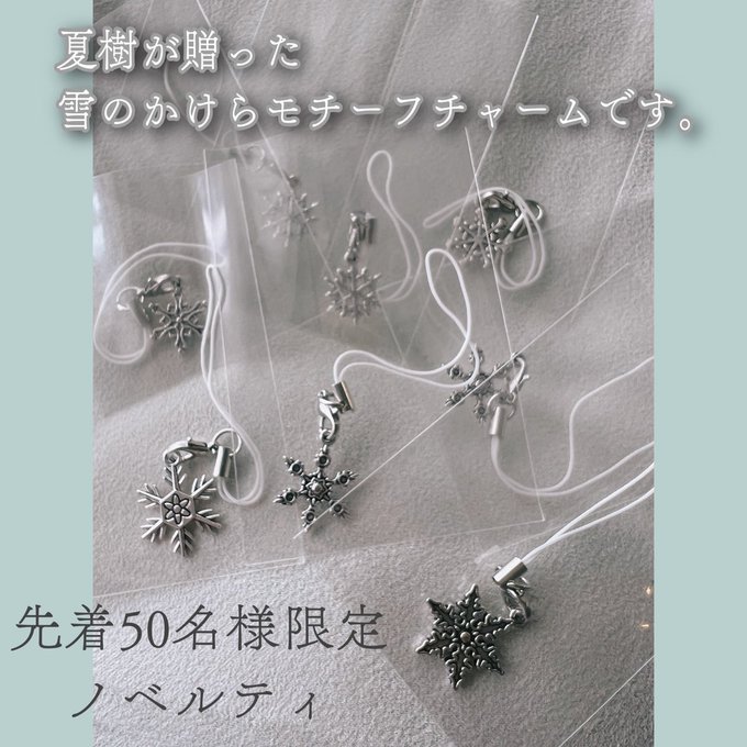 先着50名様に物語中で夏樹が空から贈った❄雪の欠片❄をイメージしたチャームをお付けします💕’(ランダム)