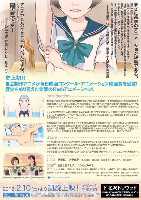 「こんぷれっくす×コンプレックス」本日2/17(金)の上映は20:00から。平日最後の上映、夜の上映があるのは今夜が最後です。上映後はふくだみゆき監督、キャスト広江美奈さん、上田プロデューサーの舞台挨拶があります。ぜひお越しください!