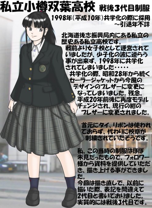 前回、めっちゃやっつけで描いた、私立小樽双葉高校戦後3代目制服です。