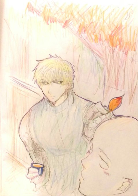 #弟師の日常を腐女子フィルターで愛でる会 タグお借りしました (_ _) 特にどちらから言った訳でもないのに、自然と隣に並んで同じ事してるってのが好き。弟子が着てるのは先生から貰ったポロシャツ(早く結婚して)