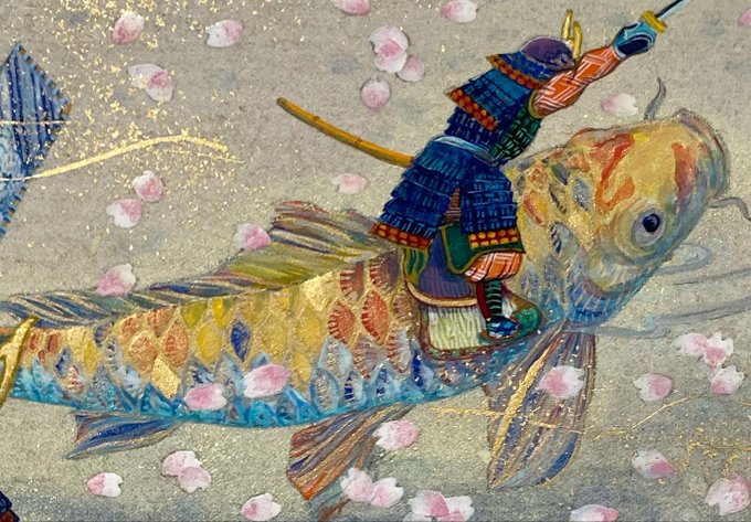 「五位鷺と同じく5月端午の節句に制作し、鯉に乗って雄々しい姿を描いた」