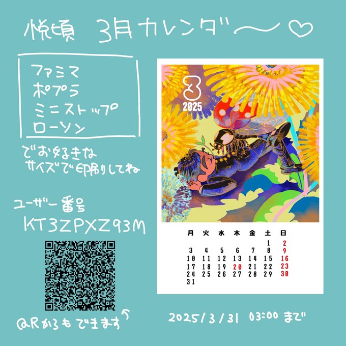 3月のカレンダーのネップリと待ち受け画像です!