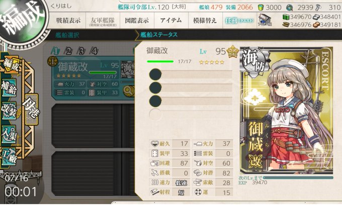 御蔵型海防艦、一番艦、御蔵。警戒中です。皆さんを・・・信じます!