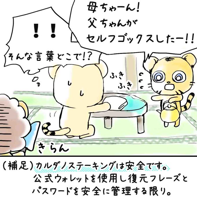 カルダノ幼稚園シリーズ その41「ゴ○○13」 背後に気をつけずに復元フレーズをメモするとこうなる‥? 復元フレーズ・送金時パスワードを表示するときは周りに誰もいないことを確認しましょう❗️ #ada #cardano