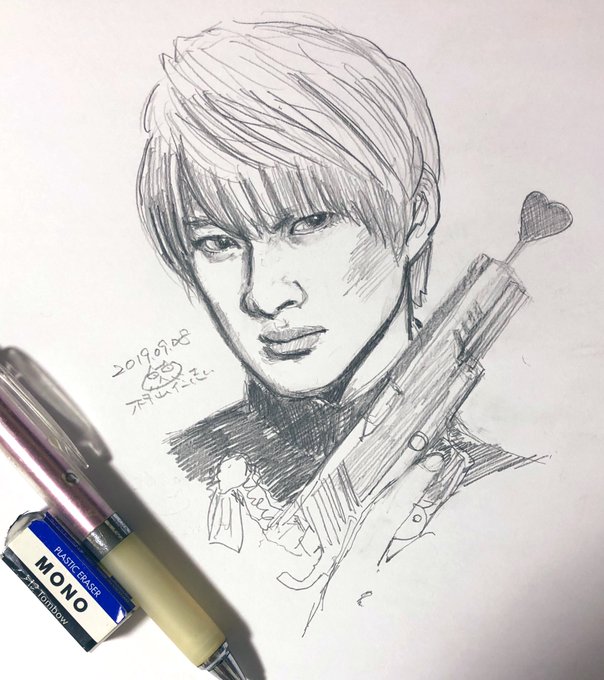 2年前の舞台のときに描いた、福ちゃんのイラスト。このときと今では、福ちゃんの顔の捉え方が変わった気がする。今回はまだ描いてませんが(^◇^;)。