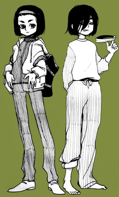 液タブを購入したので、試し描きに懐キャラ二人を描いてみた。