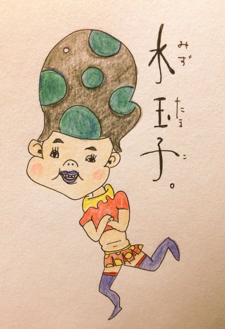 今日のイラスト。いいづかの方。テーマ「模様」なので今日は水玉模様の玉子さん。塗りムラのヒドさにビビる色ぬりセンスゼロ! 玉子はいつも半笑い。ニヤニヤしてると色々忘れる事ができるのよ。…過去に何があったのか…玉子! そして手にガングリオン?が出来ました。日に日にデカくなり怯えてます