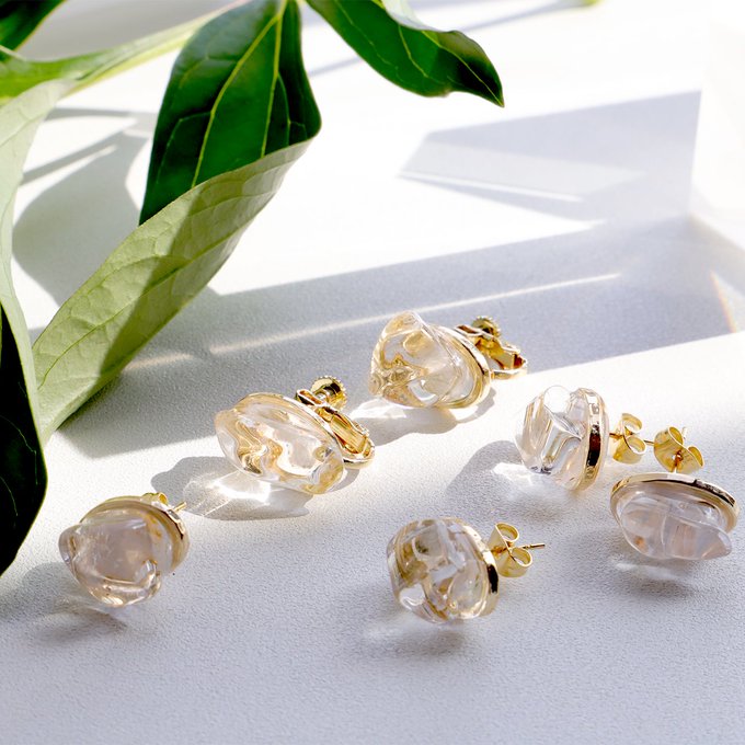 Soupetoleのアクセサリーを大阪にて販売します。色の欠片の耳飾り、水の石の指輪など💍