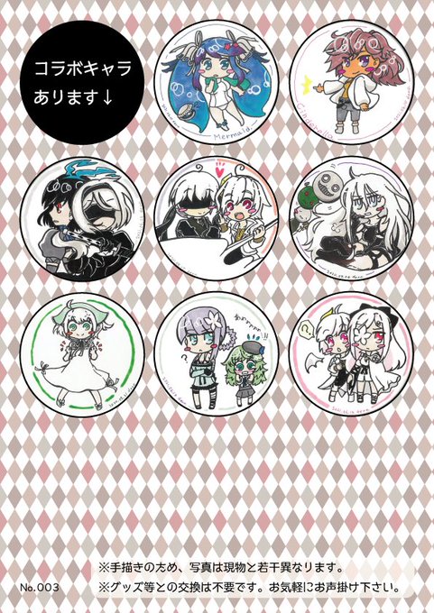 衣装本・アクキー・缶バッジ2このやぎ担当分全部をご購入くださる方に手描きコースター用意してます。先着5名、絵柄はランダムです。需要がわからないので欲しい方はご購入時にお声かけてください。