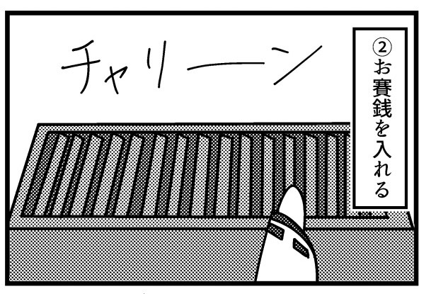 賽銭は基本的に音の鳴る硬貨が望ましく、投げ入れるというより落とすように入れたほうが良い。