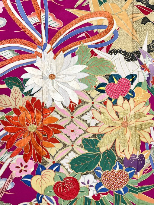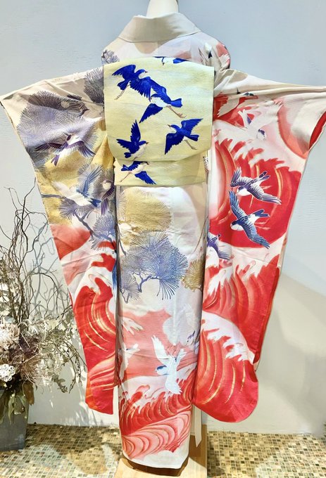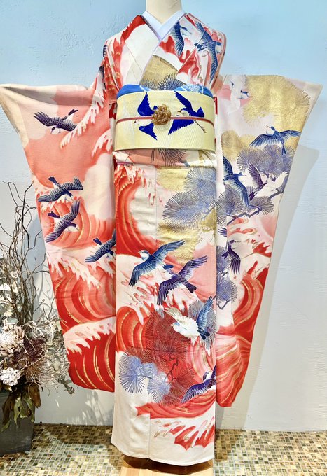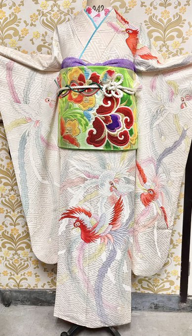 新年最初の #今日のトルソーさん は幾何学模様に鶴や仙桃などの刺繍が入った豪華なお振袖コーディネート👘