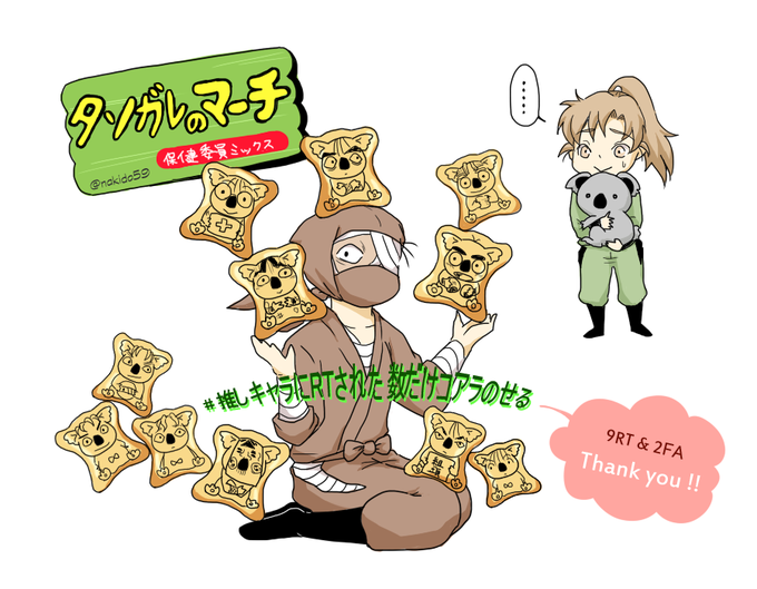 #推しキャラにRTされた数だけコアラ乗せる 『11ぴきのコアラとちょうじ』 RTありがとうございました!!!