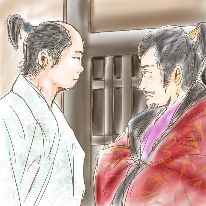 #推し麒麟衣装 数寄者ファッショニスタ松永久秀の陣羽織も!最高ですよね!柄物大洪水なデザイン!道三様の着てる暗黒卿な衣装だって全部好きでしたし、後半の光秀の心の濁りと憂いを感じる明智ブルーも最高でしたし、義輝のエレガントな紫だって、ああ、どれも好き、やはり設定資料集が欲しいです。