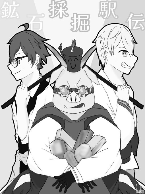 #描いた絵をモノクロにするとかっこいい 相変わらず出せるカラーは少ないから過去絵とファンアートの再掲だぜ!!!