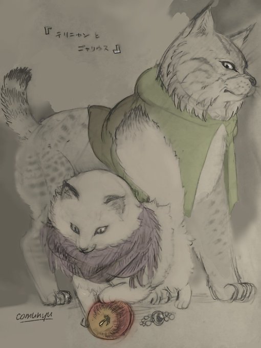 ⚠擬獣化注意!⚠台風を前にして緊張する中、ここ数日軽く色を付けてたオクトパストラベラー絵を(つか趣味絵を(¯―¯٥))。……擬人化ならぬ擬獣化テリオンとダリウス。ただの趣味です💦……好きなんすよ擬獣化するの…ボブキャットは適当ですゴメン。