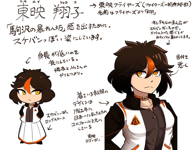血の気が多い選手が多い「駒沢の暴れん坊」だったため、スケバンと用心棒って感じのデザインにしています