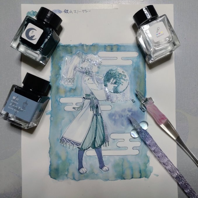 ラフなので紙はLIFE無地、ガラスペンでサッと描いて筆で伸ばしました。
