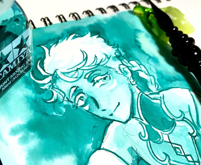 きいさん(@key_pixiv )にいただいた文具館コバヤシの鉄仙&文具館タキザワ翡翠試し描き!うちよその片方をもう片方のイメージインクで描くという上級編概念です