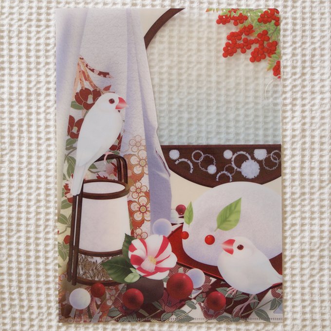 B5版28p、クリアファイルやポストカード、マイクロファイバークロス でおなじみの和風文鳥イラストを大きく綺麗な色で眺められます。