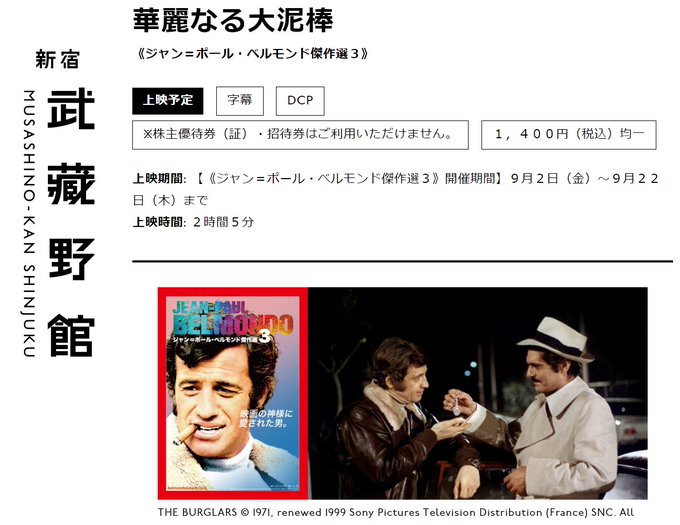 「#新宿武蔵野館」で、9/2から始まる「#ジャン・ポール・ベルモンド傑作選3」「#華麗なる大泥棒 」の席予約完了!!