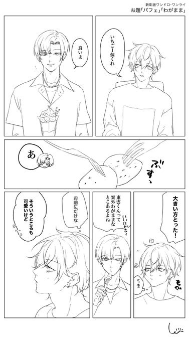 ○パフェ、わがまま○ 「あげるからくれないかな?」 「やらねーよ」 #新彰版ワンドロワンライ #新彰版ワンドロワンライ延長戦