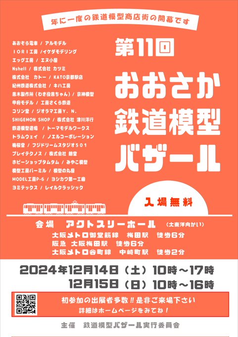 今年の12月は、第11回おおさか鉄道模型バザールです!