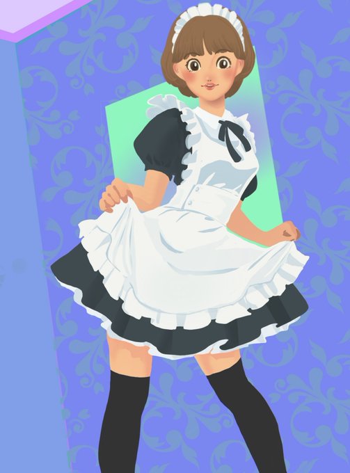 #日めくりヒロイン 第24弾は、#あだち充先生 の #みゆき より #若松みゆき ちゃん。現代なら文化祭でメイドカフェしそうなので、#メイド さんです。本当は鹿島さん派。謎背景…。#イラスト好きと繋がりたい #イラスト練習中 #aheroineaday #mitsuruadachi #miyuki #illustration