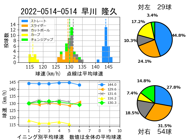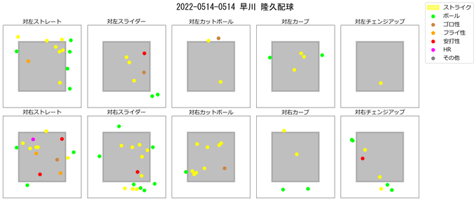 左右ともに配球は特に変えず5球種を使い分け