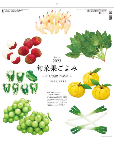 気の早い話ですが、松野美穂作品集「旬菜果ごよみ」2023年版が公開されました㊗️ おかげさまでシリーズ5作目です✨ 社名の印刷ができる名入れ用のカレンダーですので、ぜひ販売促進などにご活用くださいませ。