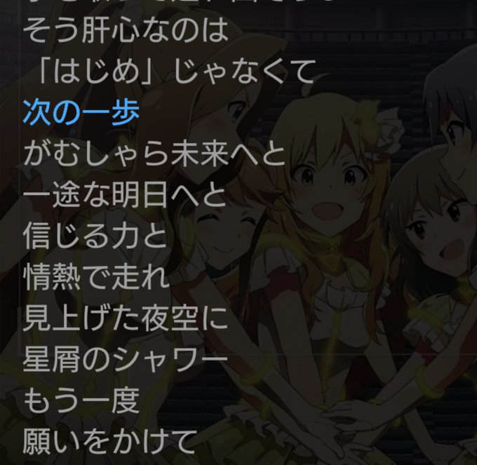 私の #ミリシタ心の1曲 は「星屑のシンフォニア」!曲が、歌詞が劇的に泣けるうえに4thライブでの小岩井さん(天空橋朋花役)の涙…いまだにミリオンライブで1番好きです!