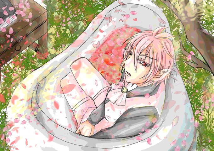 #春のazくん桜祭り 素敵タグ発見したので参加させてくださーい。 バスタブに入ってるつもりなんだけど描いてるうちに便器にしか見えなくなってきた。
