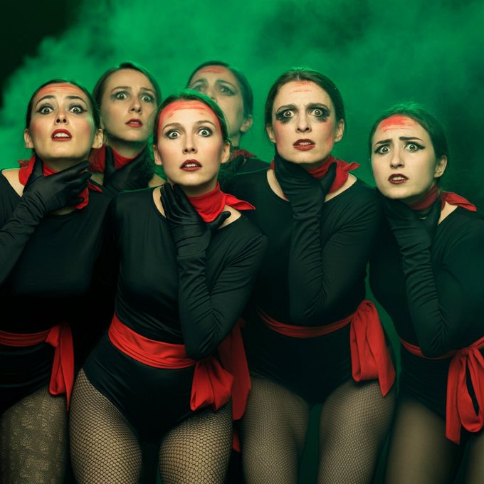 二人の大げさな表情が昭和特撮ポスター風?