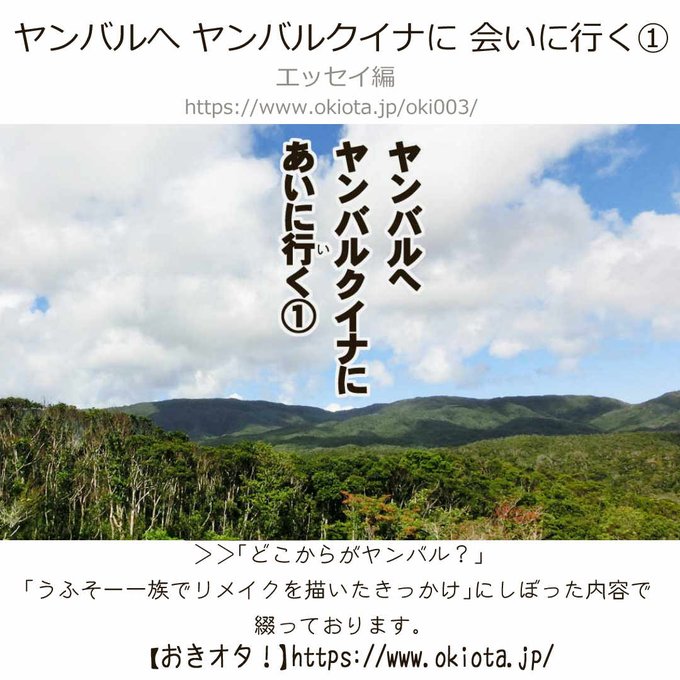 【おきオタ/エッセイ編】 ≪やんばるへヤンバルクイナに会いに行く①≫ どこからやんばる?うふそー一族でリメイクを描いたきっかけなど ↓↓サイト https://t.co/gOIZeZxGoE #おきオタ #沖縄情報 #沖縄 #やんばる #ヤンバルクイナ #沖縄北部 #ロードキル #昼のライトで命を救う #ドライブ #朝おき