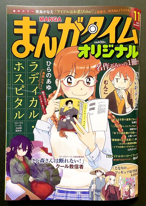 まんがタイムオリジナル11月号発売です。『ラディカル・ホスピタル』やっております、よろしくお願い致します。個人の感想文ですの巻。書き物苦手意識のルーツコレじゃね?と思い至る榊だが…。表紙は文学少女まりちゃんと文豪榊氏と猫である。