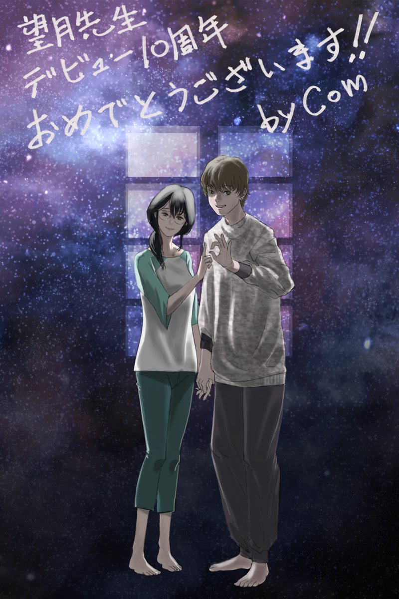 望月麻衣先生@maimotidukiがデビュー10周年をお迎えになったと言うことで、描かせていただいたお祝いイラストです。