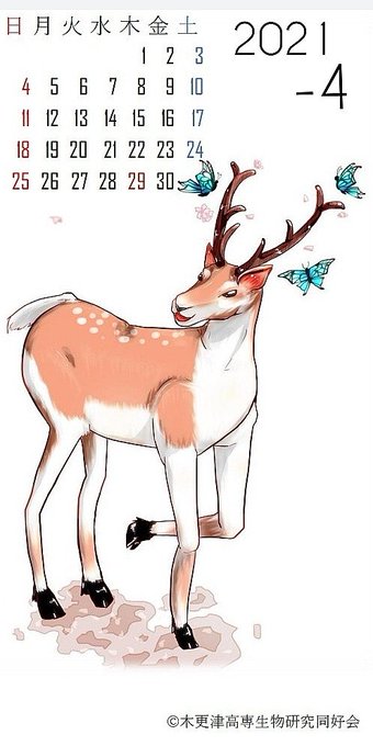 本来、鹿は4月頃になると落角しますが、イラストなら何でもありです。お納めください。(同好会員)