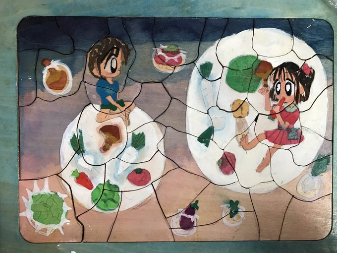 5年生の時に作った木製パズルが出てきた( ゚д゚ )「シャボン玉の中の野菜」らしいwwwwww酷い😇
