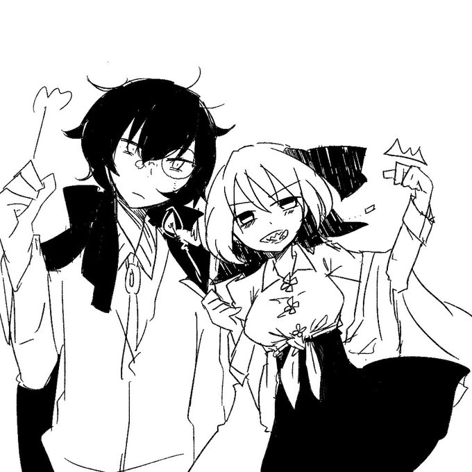 ⑥イチ、キナ 自称化物と魔女コンビ。幼馴染で束の町の中では対等な関係にいる2人。 数年前までは背格好大して変わらなかったのに急にでっかくなられてちょっと寂しいキナ。 断りもせずに勝手に服を借りてく幼馴染のせいでたまに着る服がなくなるイチ。