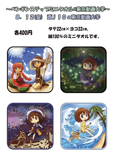 (・Θ・)ノ自分が所属している東京動画大学(8/12 西j10a 東京動画大学)にもペンギンステップのグッズをいくつか置かせてもらっています。1日目の西になりますが、近くまで来られた際には遊びに来ていただけると嬉しいです!