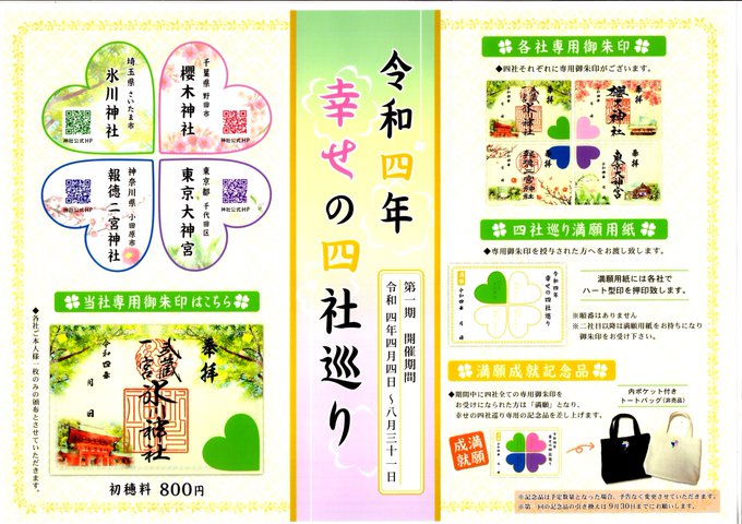 4月4日より8月31日まで、令和四年幸せの四社巡りの御朱印を授与いたします。