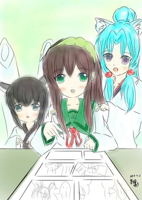 描きかけのようやく完成しますたm(__)m ずんちゃんたち姉妹です(ヾ(´・ω・`) #東北ずんこ #東北きりたん #東北いたこ #イラスト