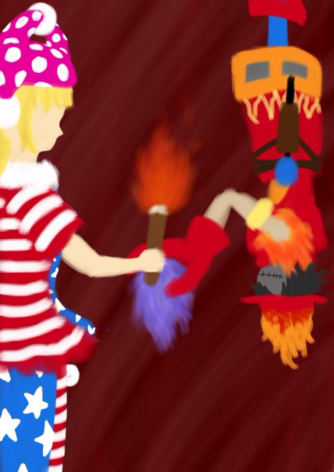 #深夜の真剣お絵描き60分一本勝負 #東方電子獣 1時間半遅刻() クラウンピース×フレイウィザーモン 集中力持たねぇ