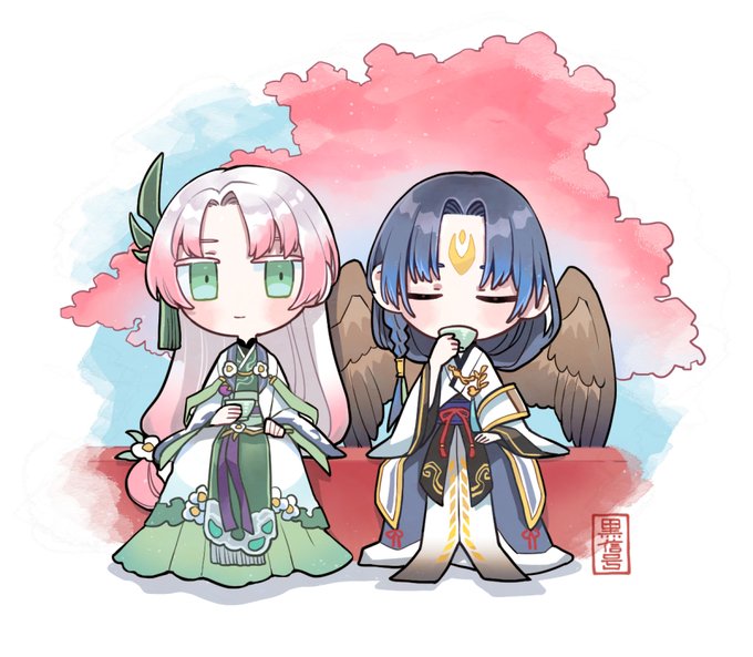 やっと描き終わった~。 ひとまず龍燕、東謹、鳳夷のアクスタがあります! #三界の宴
