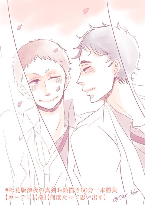 めっちゃ遅刻したしアレだけど…^ワ^本当松花可愛いごろんごろんする…っ!ワンドロ久々すぎて時間配分謎過ぎた!しかしいろんなワンドロあって楽しいな~~~! #松花版深夜の真剣お絵描き60分一本勝負