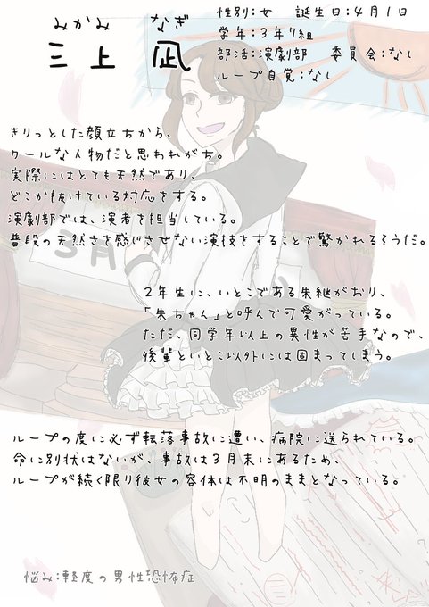 素敵な企画様【@sakuraRain_TL】に三人目失礼致します。事前に恋愛関係のみ頂いてますがその他の関係真っ白なので遊んで頂けると嬉しいです~!宜しくお願いします!