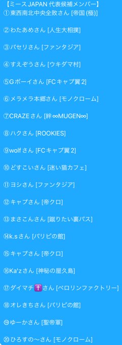 明日、ミースJAPAN代表メンバー(12名)の発表だお(*´д`*)ドキドキ
