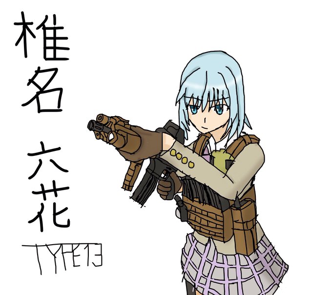タンカラーの銃…現代的な香りがたまりません。ふゆの春秋先生の今回のパッケージアートは椎名六花の私服バージョン!