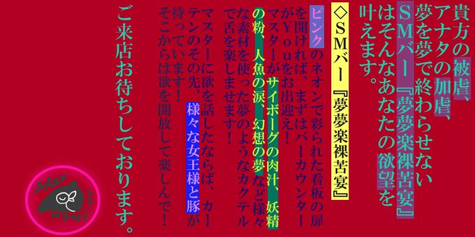 SMバー『夢夢楽裸苦宴』で貴方をお待ちしております。