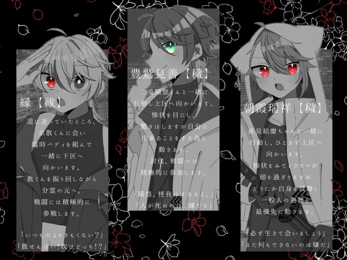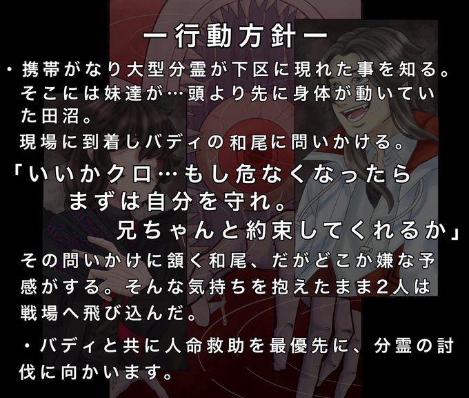 しゃしゃみさん(@ shashasha0483 )宅、流川史郎さんと臨時バディ組ませて頂いてます。色んな想いを交錯させつつ、上区スタートで下区に向かう予定です