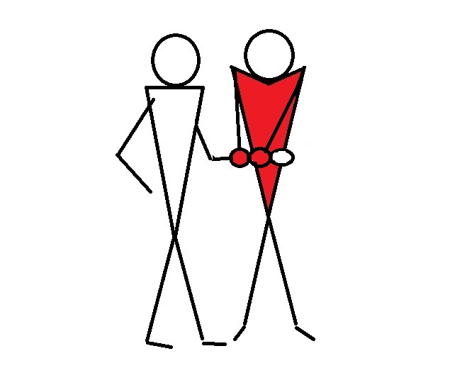 【私事、「合気柔術の特徴」】背が低い人の方が有利な武術。実質的な始祖武田惣角が背が低かったためだが、例えば植芝盛平(155㎝)でも使い辛い技があった。大武田は身長148㎝なので7㎝低い。どちらも小兵だから差は無い、と思うだろうが問題は肩の高さも7㎝低くなる。図を少し見ていただこう。